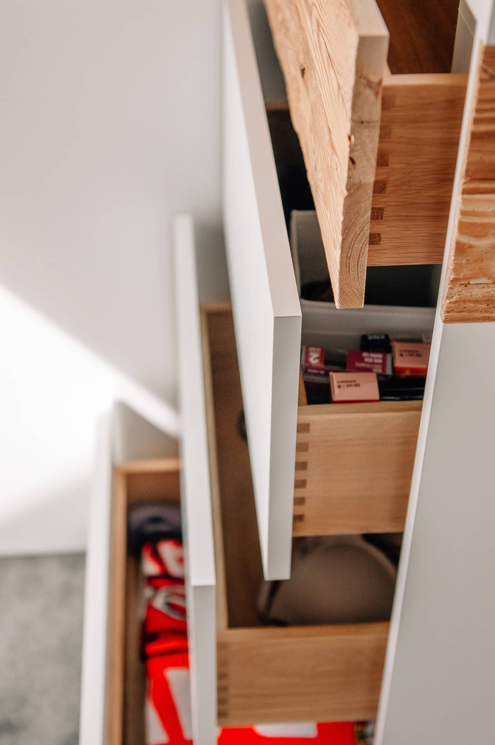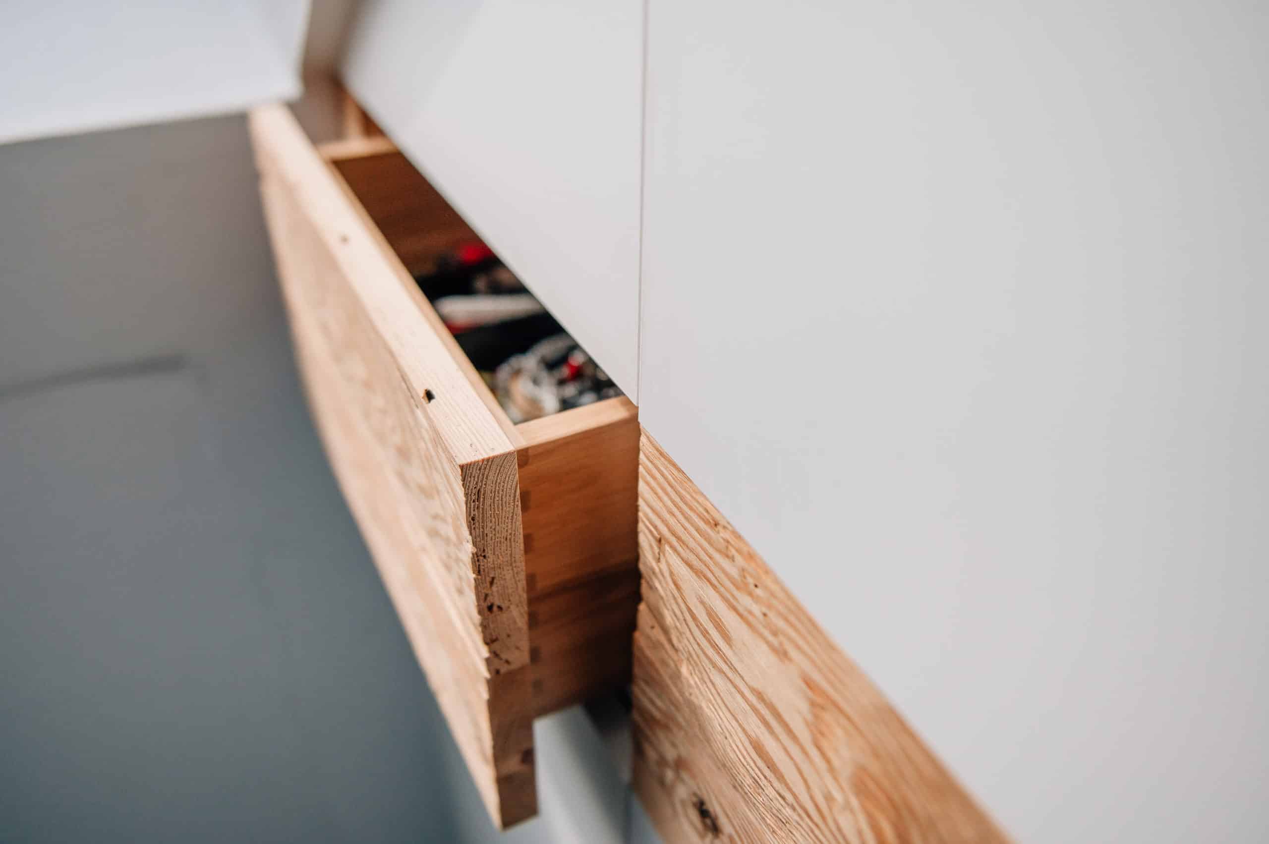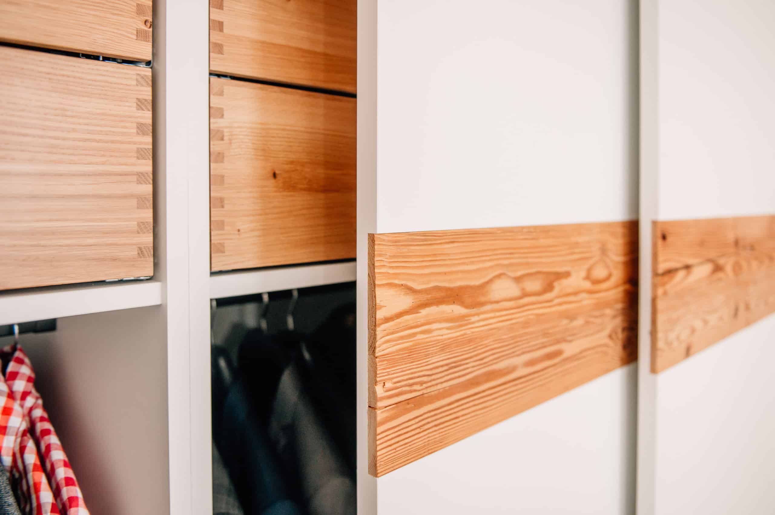 Unser handgehacktes Altholz kombiniert mit weiß matten Fronten und Schubkästen aus massiver Eiche. Praktische Schiebetüren vor den Schränken sorgen für ein aufgeräumtes Schlafzimmer mit viel Stauraum!