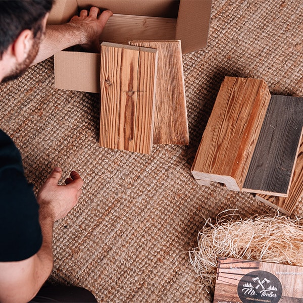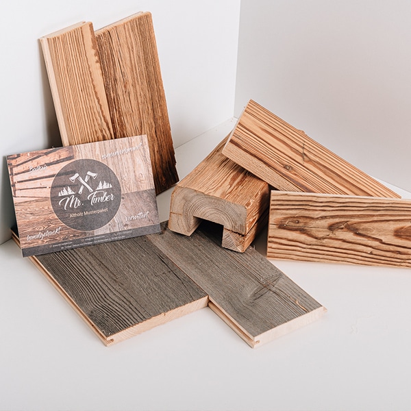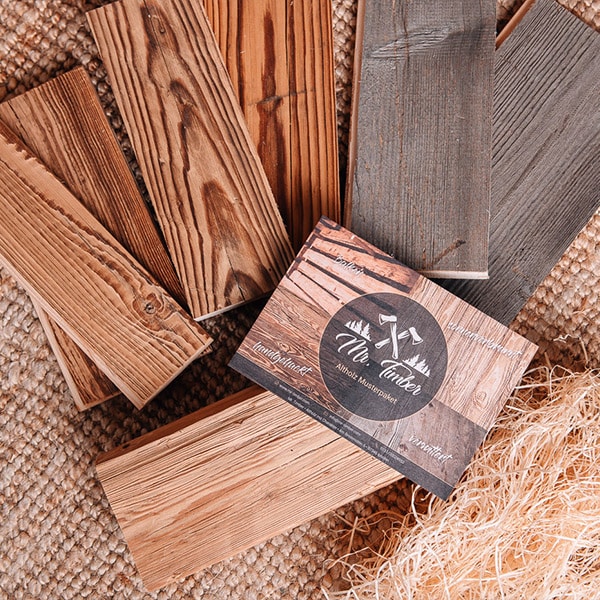 Du möchtest ein Projekt mit Altholz realisieren, bist Dir jedoch noch nicht sicher für welche Oberfläche Du Dich entscheiden sollst? Wir helfen Dir mit unserem Mr. Timber Musterpaket.
